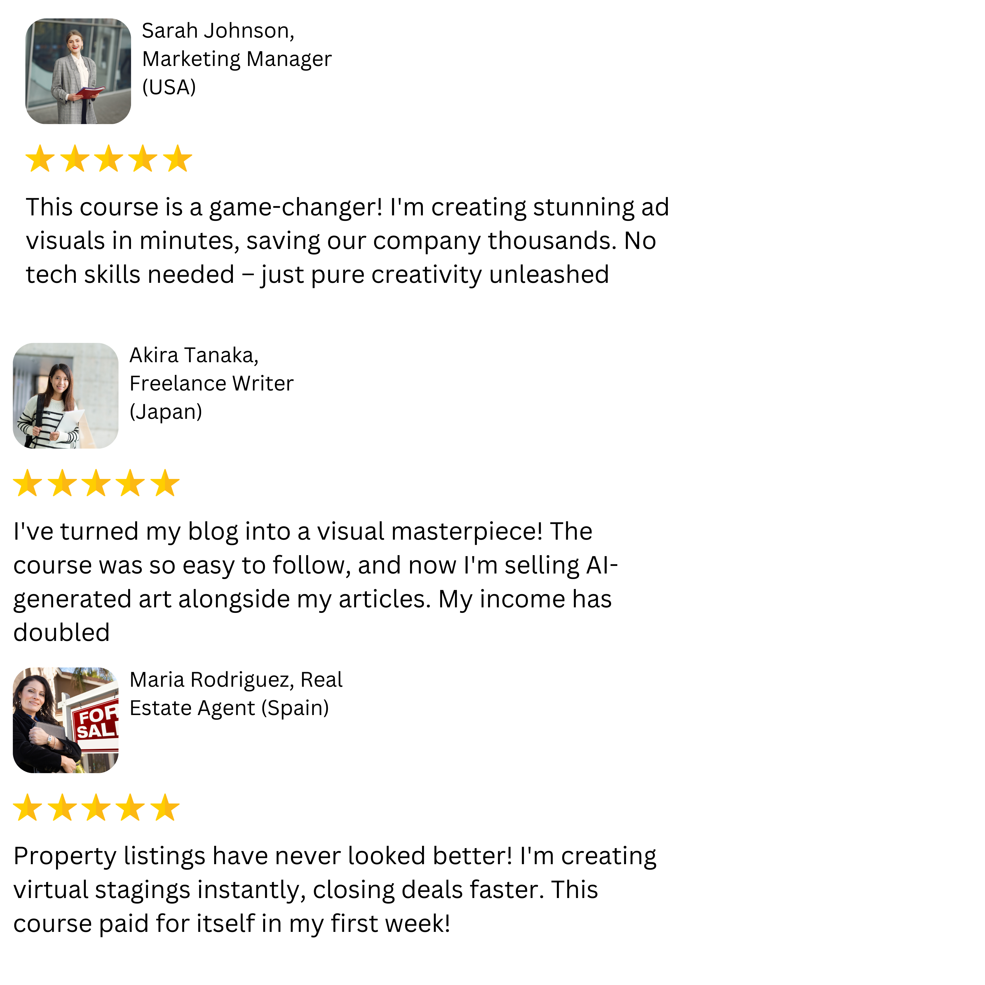 Designers, photographers, content creators, business moguls—listen up! This isn’t just a course; it’s your lifeline in the AI-driven future. Every second you wait, someone else is claiming their spot at the forefront of this revolution. Don’t just adapt—lead the charge!