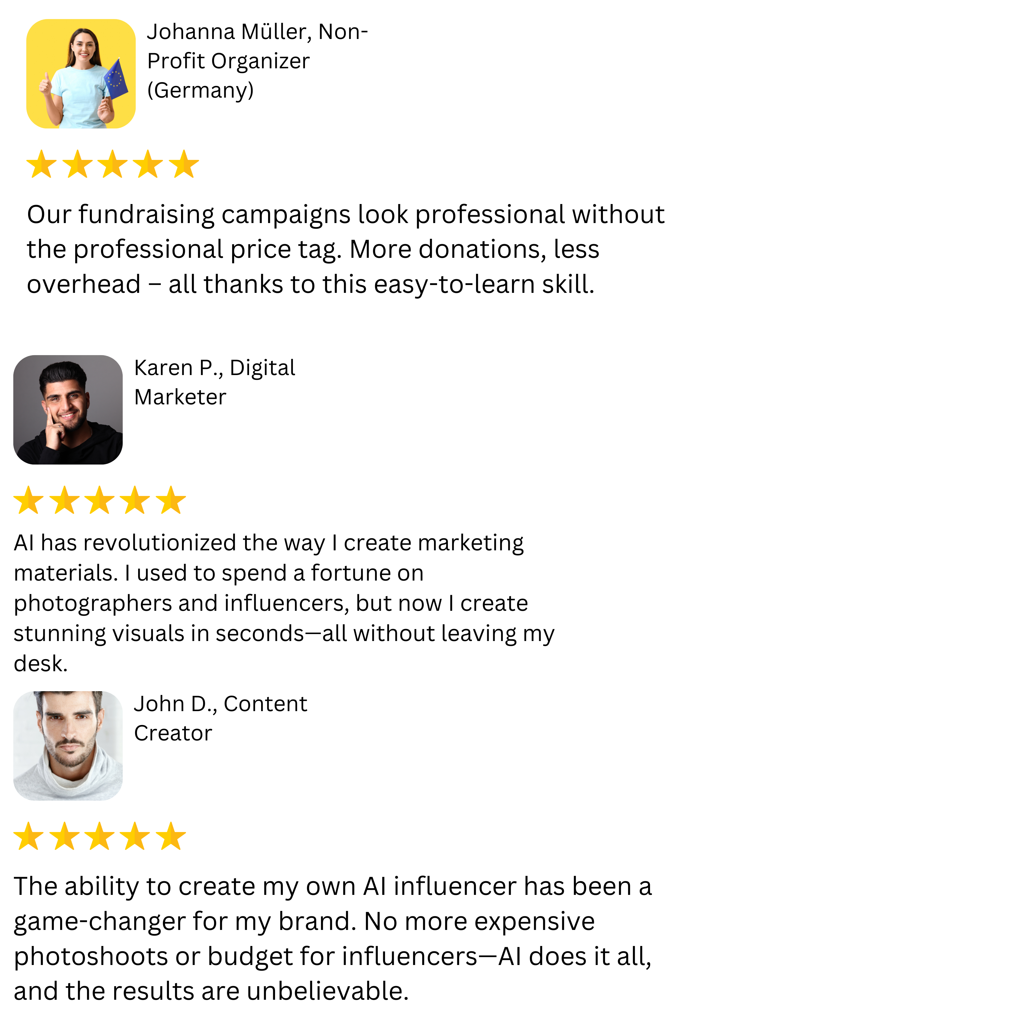Frustrated with sky-high influencer fees, marketing agency retainers, and professional photo shoot costs? Our AI Course is your ticket to creating mind-blowing visuals for your campaigns in mere seconds—say goodbye to expensive studios, lavish wardrobes, and outsourced teams. Imagine crafting your very own AI influencer or transforming yourself into one, minus the hefty price tag of exotic locales—be mesmerized by breathtaking backgrounds and visuals at your command. Here’s the kicker: no coding skills or previous IT experience are required, and you can start creating within a day of completing the course. You’ll have complete control of your creative process while saving both time and money. If you can imagine it, you can have it generated—quickly, effortlessly, and with stunning results.