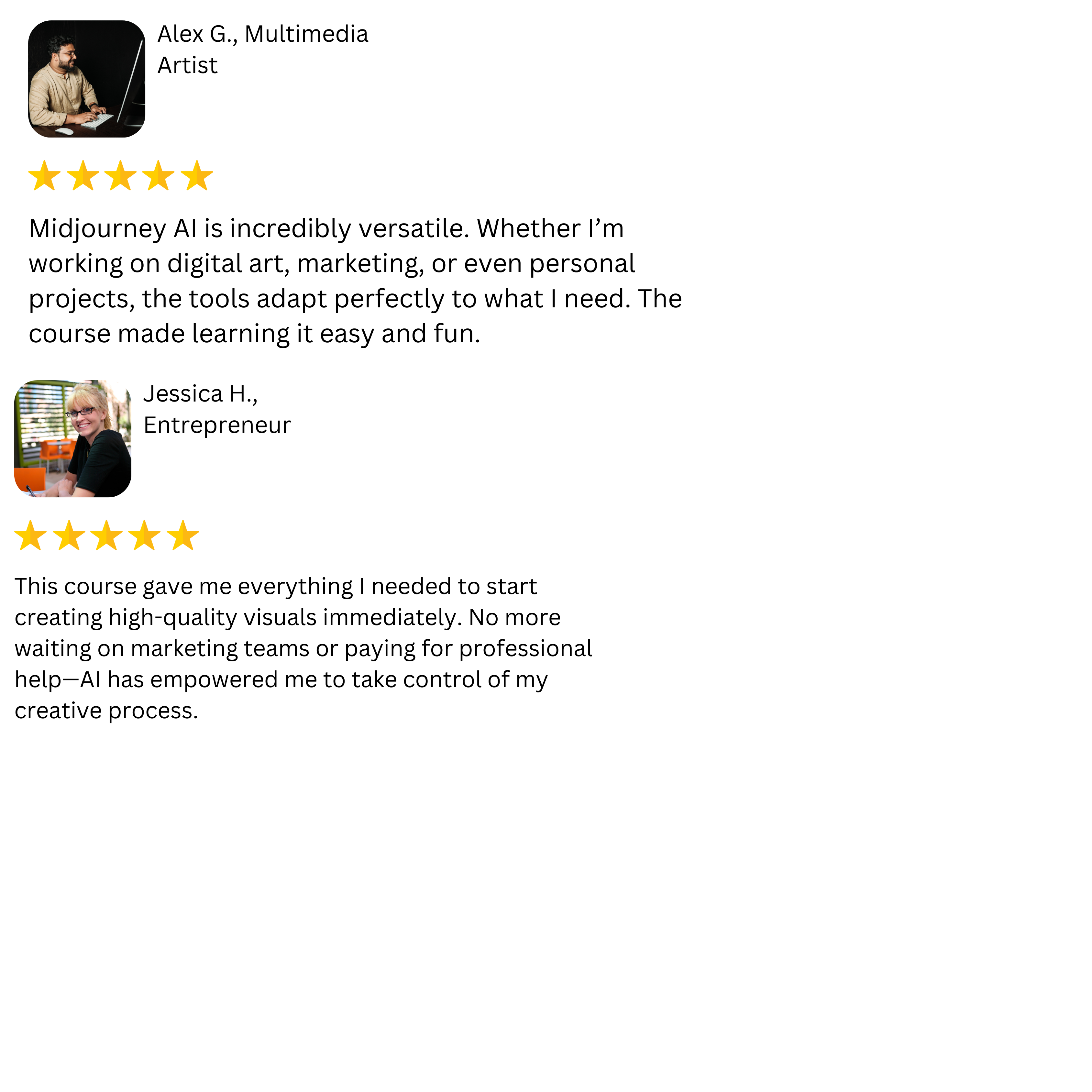 YouTube is a fantastic platform, and we’ve spent countless hours learning from it ourselves. However, only a small percentage of that content was impactful enough to drive real business growth. By purchasing this course, you’re not just buying information—you’re saving thousands of hours by having everything you need to know condensed into one program. We’ve already made the mistakes and fine-tuned the process, so you don’t have to. If you want to master Midjourney AI quickly and start seeing results without wasting time, this course is for you.